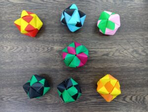 いわゆるユニット折り紙のくす玉と呼ばれるものを短時間でたくさん作り上げました。